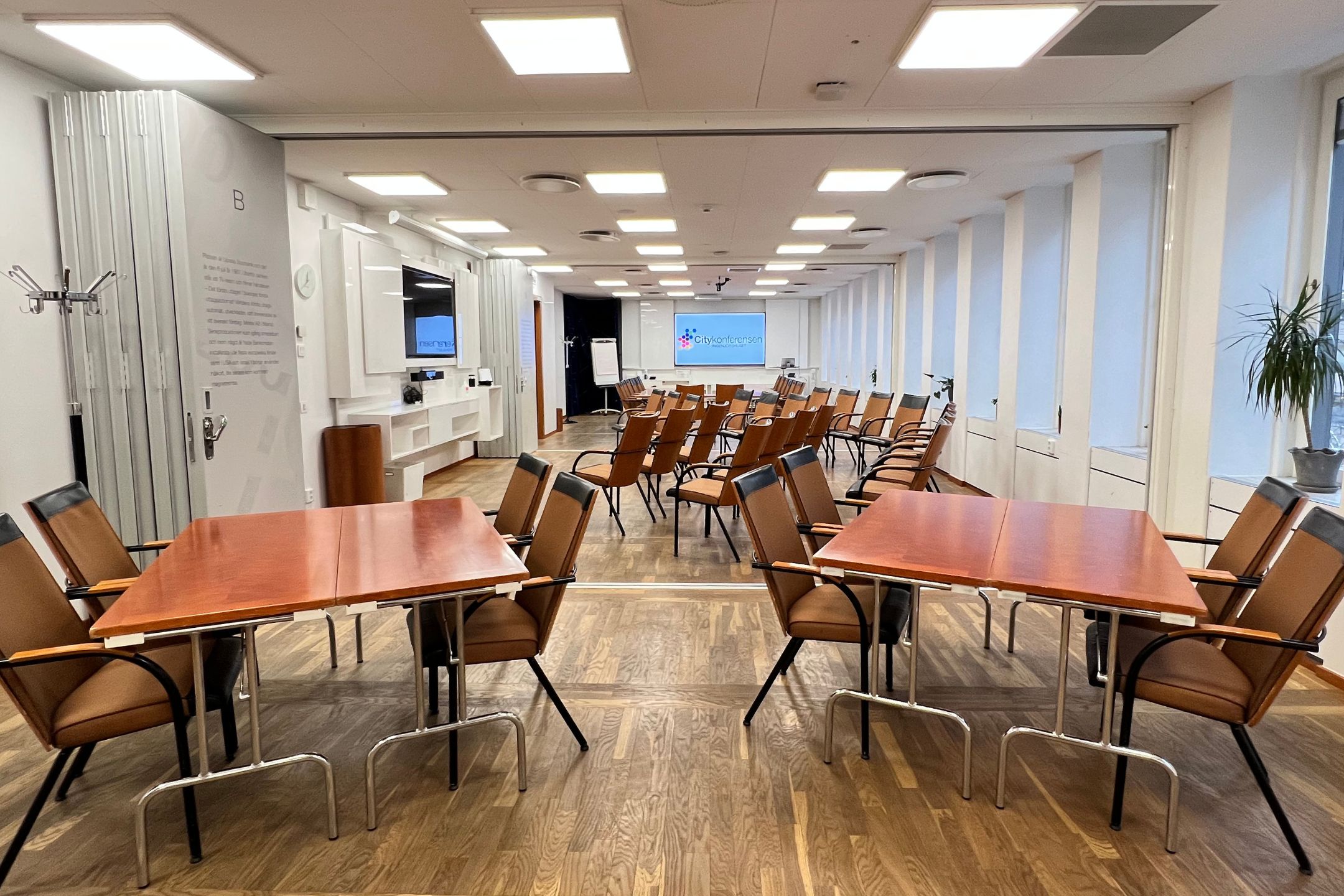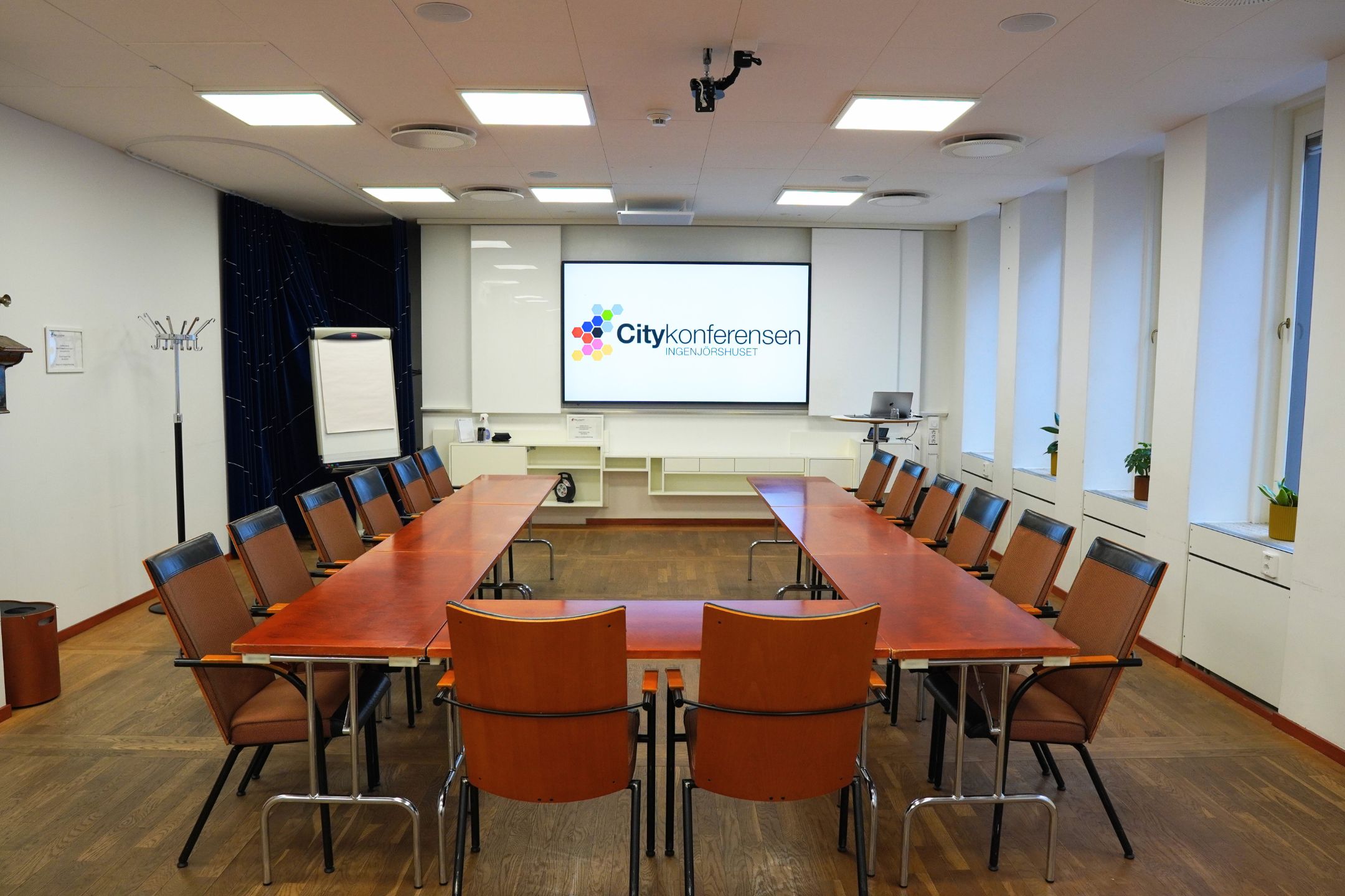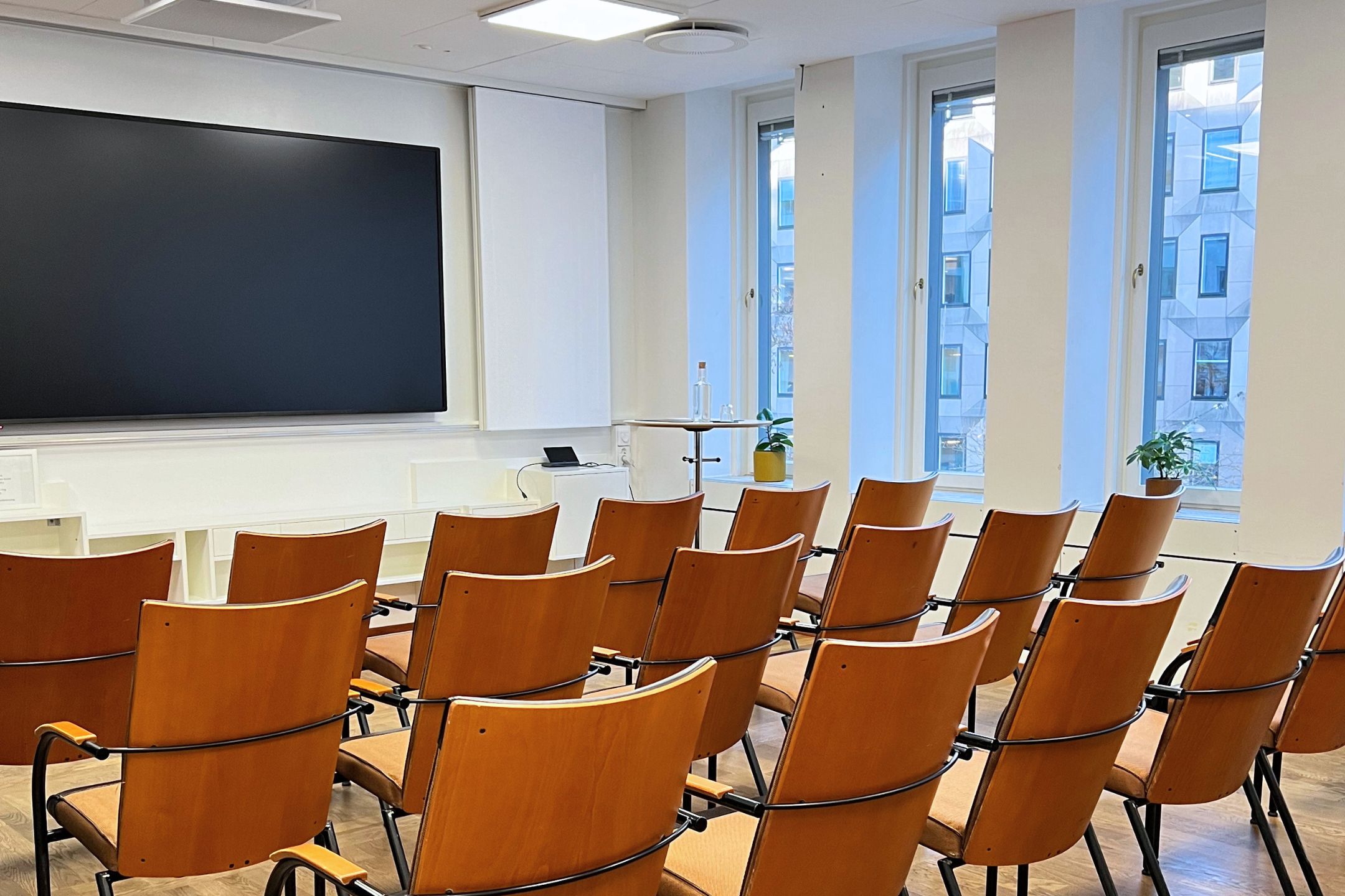 Utbildningssalen lämpar sig väl för hybridmöten.